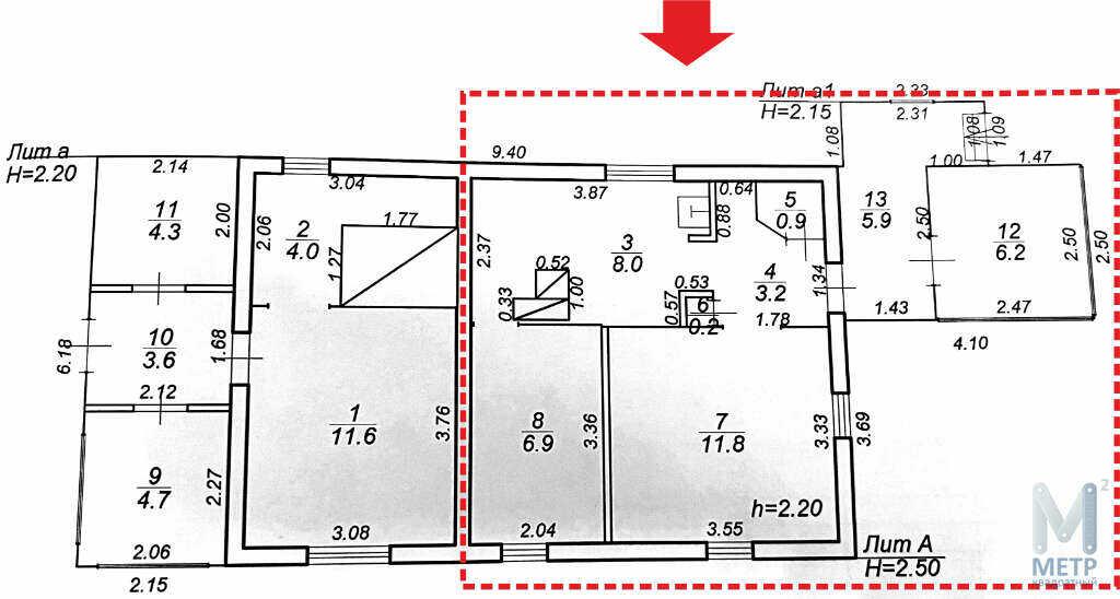 - Добротный 1-этажный бревенчатый дом, часть дома - 42,2 м2 (общая площадь дома 71,3 м2, на 2 хозяев), 1960 года постройки.