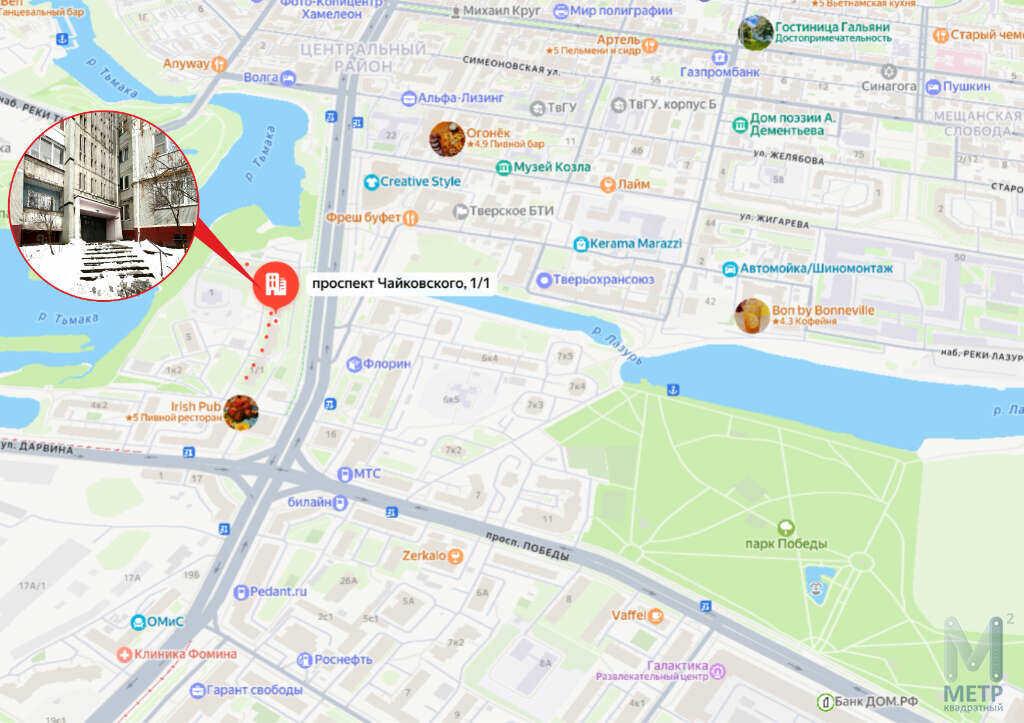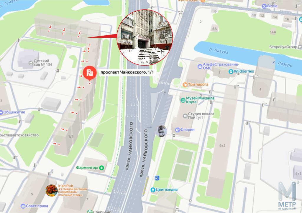 Адрес: пр-кт Чайковского, д. 1, корп. 1, престижный Центральный район.