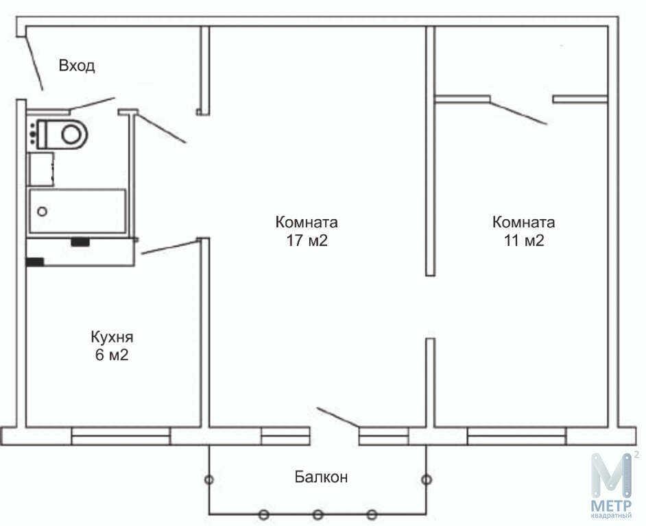 общая 45,5 м2, жилая 28 м2, кухни 6 м2 |