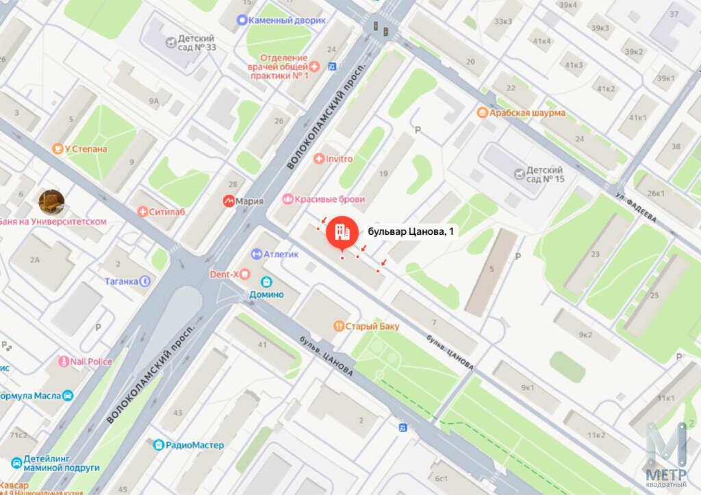 Бульвар Цанова, дом 1 - Московский район, рядом с Южным мостом, ТЦ Домино и Волоколамским пр-ом. Всё необходимое в шаговой доступности: магазины, супермаркеты, остановки транспорта, детские сады и школы. Удобный выезд на объездную дорогу и в центр города.